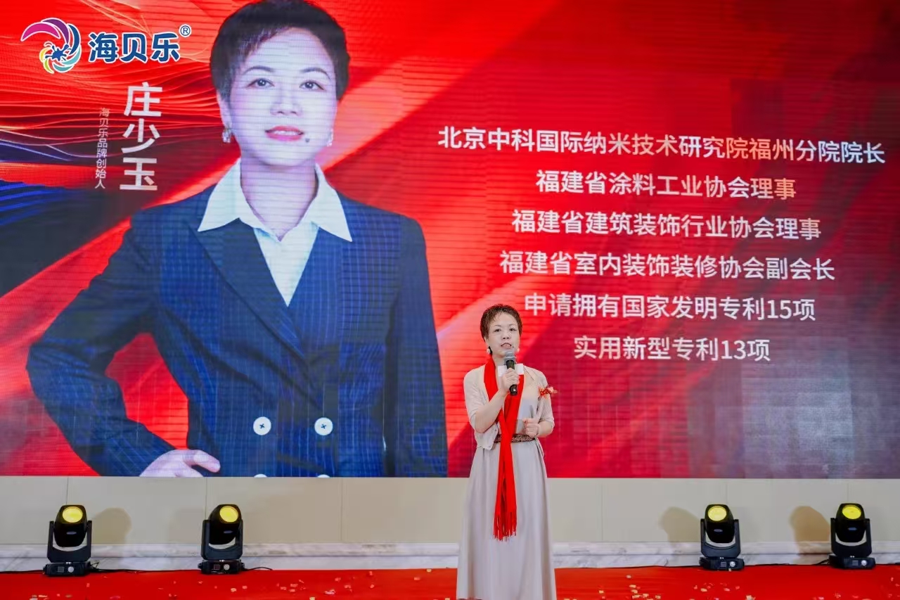 我司董事長莊少玉女士也在會(huì)上分享了她本人自2007年起一直扎根于環(huán)保無機(jī)涂料的心路歷程和企業(yè)運(yùn)營思路。海貝樂以其前瞻性的市場洞察、環(huán)保創(chuàng)新的產(chǎn)品理念以及穩(wěn)健的發(fā)展藍(lán)圖,收獲全場目光,并獲得在場嘉賓的一致認(rèn)同和熱烈合作意向反饋。